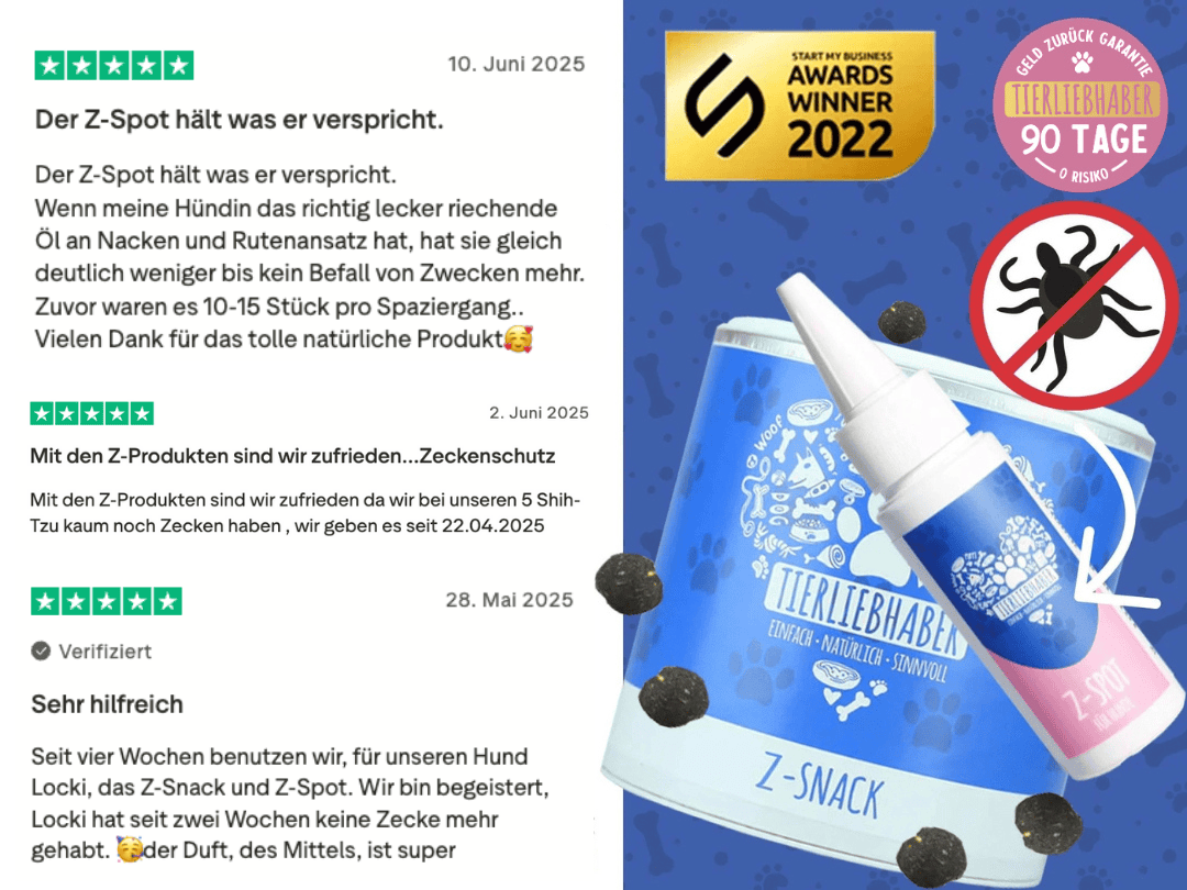 Aufgrund der tollen Erfolgsgeschichten von anderen Hundehaltern und der Empfehlung von vielen Tierärzten wird aktuell deutschlandweit vom Zeckenschutz Bundle und Z-Snack berichtet.