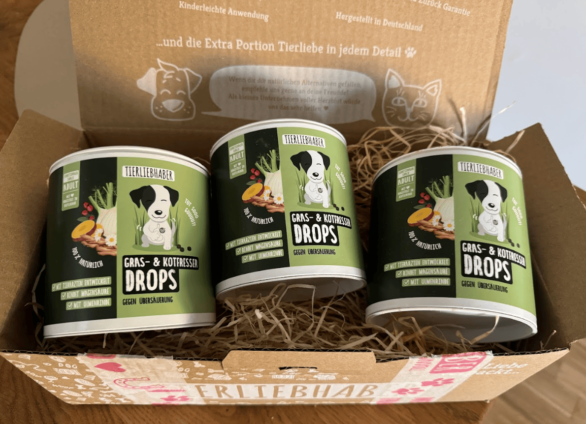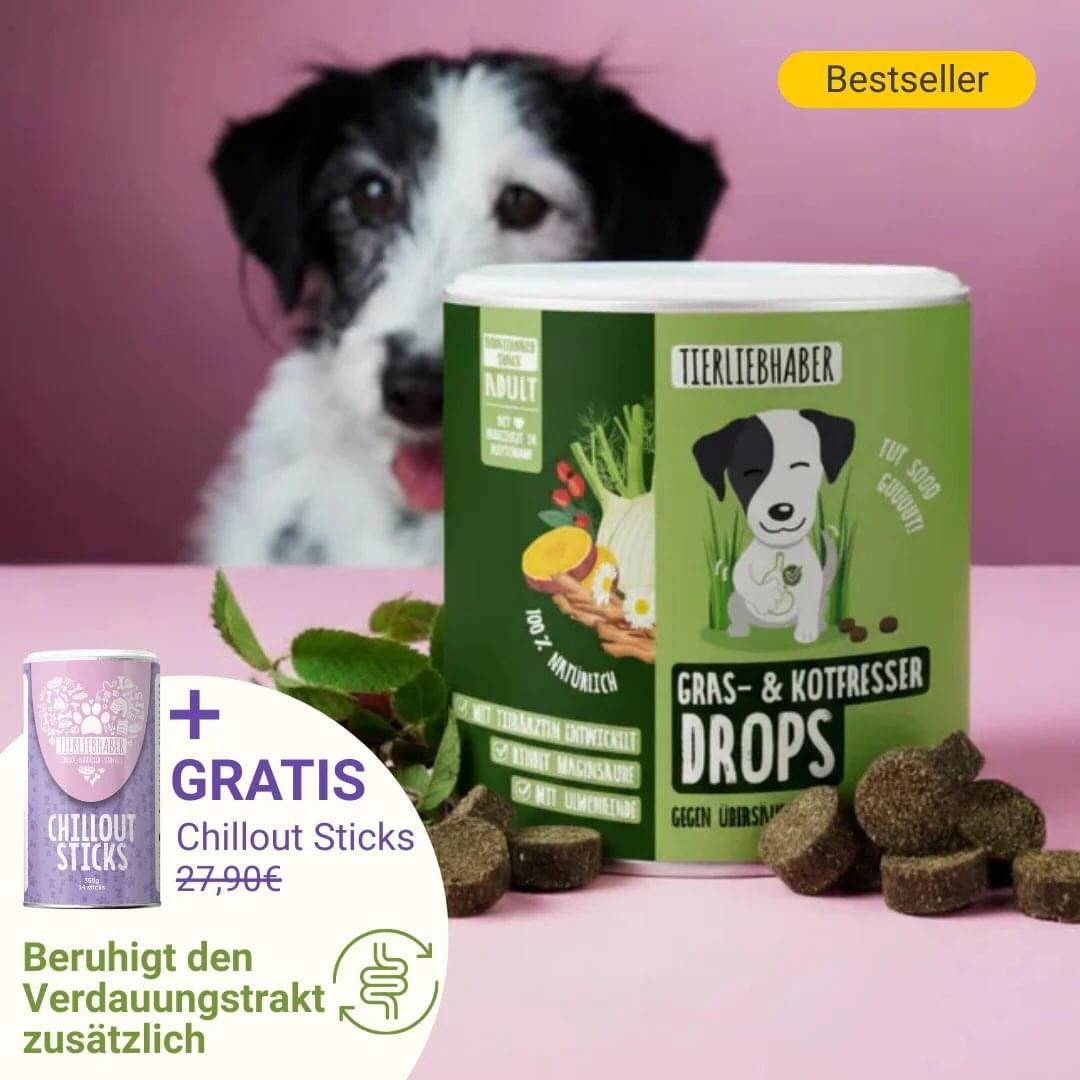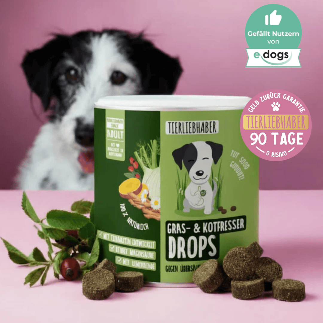 Die Gras- & Kotfresser Drops von Tierliebhaber mit “Anti-Sodbrennen” Formel