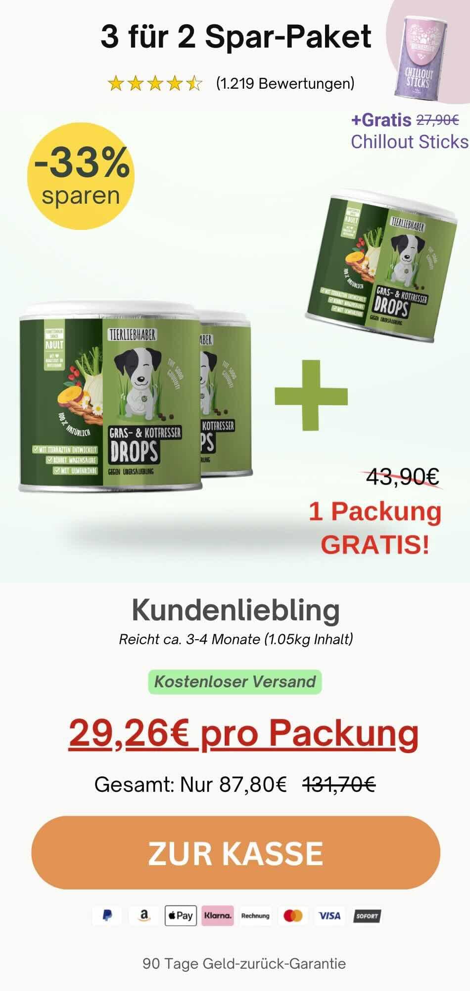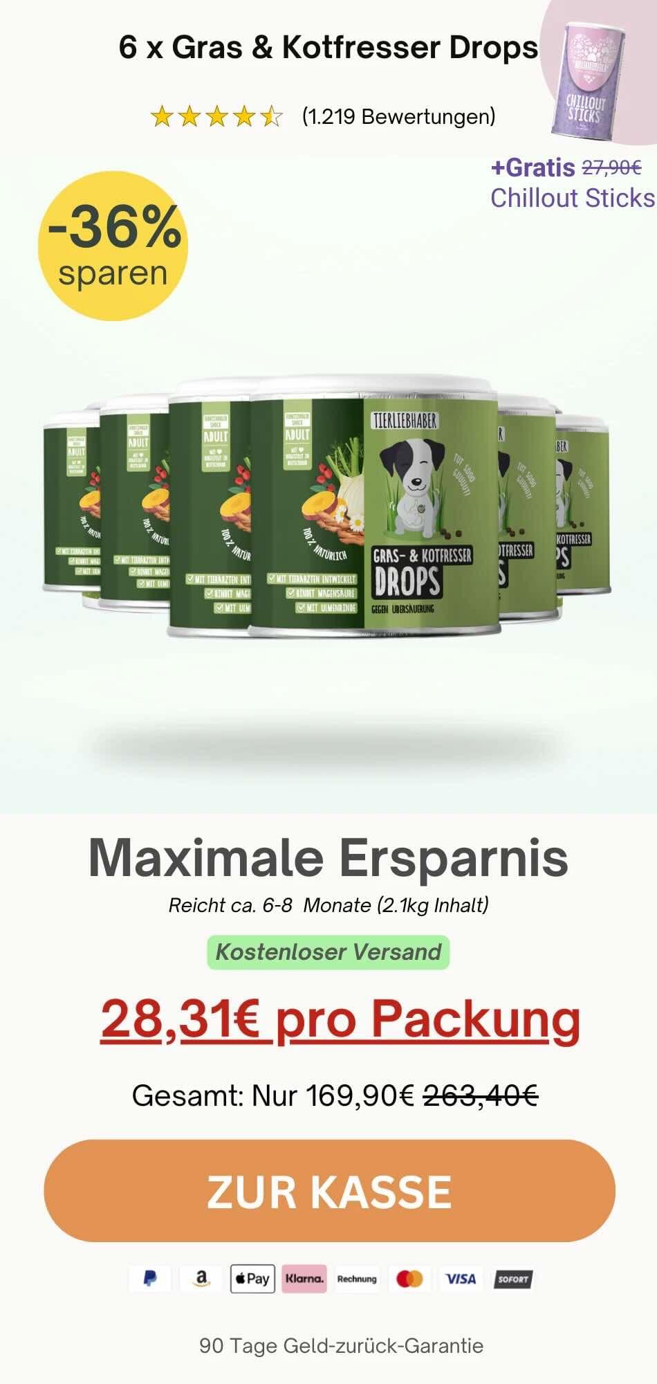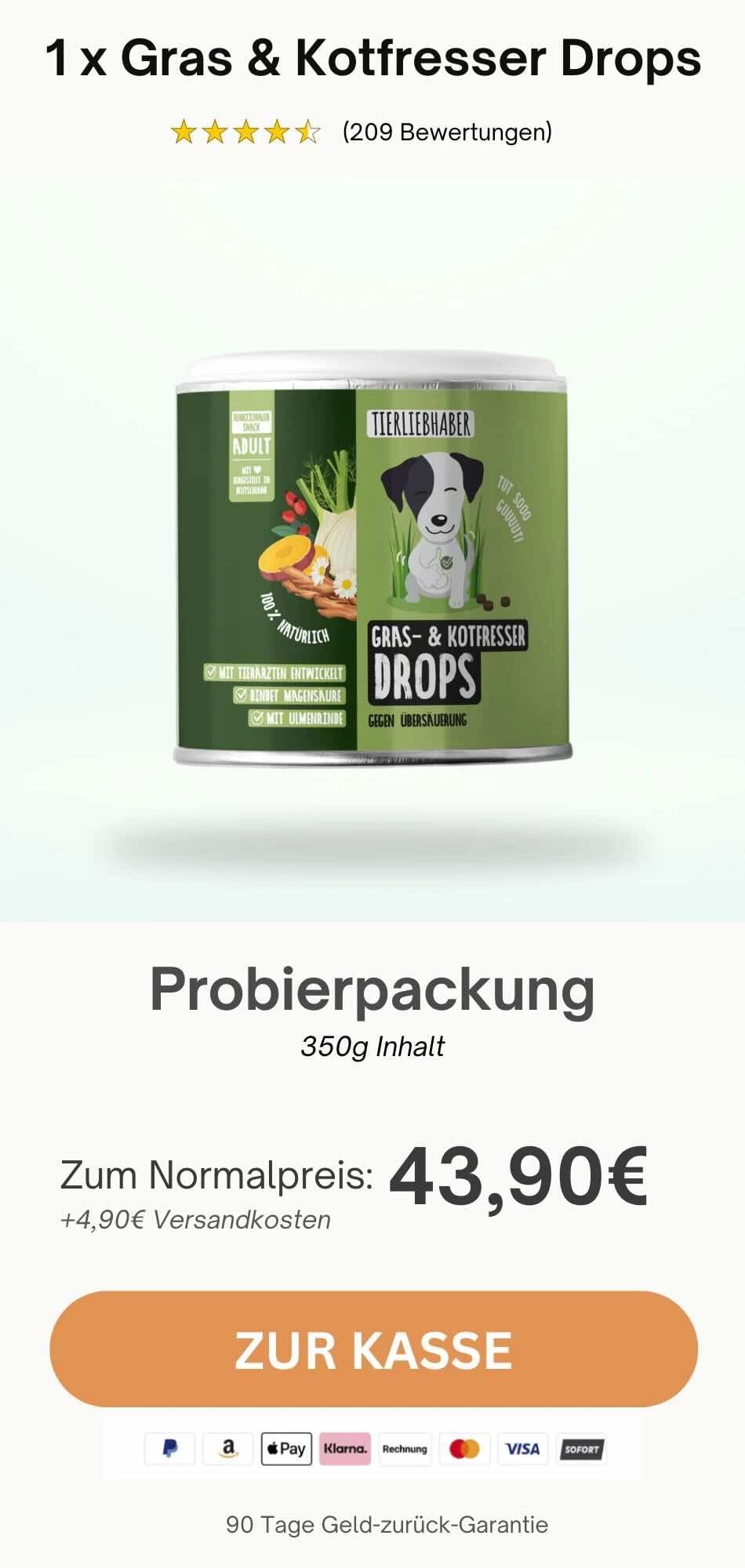 Die Gras- & Kotfresser Drops von Tierliebhaber mit “Anti-Sodbrennen” Formel